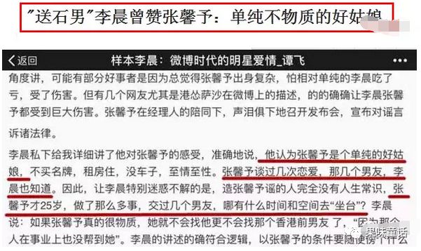 就在这个“真实的小女孩”被“坐台”传闻缠身的时候,李晨还愤然抵制,找了多家媒体力挺女友,称张馨予是“单纯不物质的女孩”。