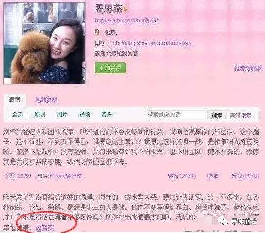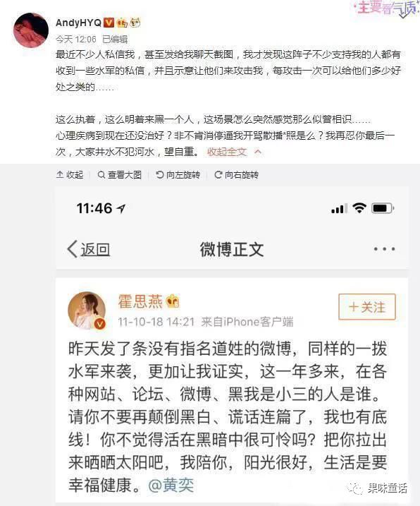后来霍思燕也隔空骂了几次,但终于一下没忍住,发微博直接@黄奕说她请了水军来黑自己。