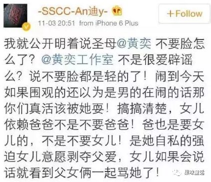 也直指黄奕是一个怨妇型女星,爱慕虚荣,撒谎愚蠢,为博关注就会把她肥头大耳的前夫扣到自己头上。