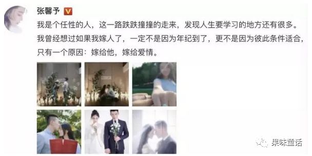 这周末,张馨予嫁给爱情了。高调地在前任的现任范冰冰正处在风口浪尖的低迷状态的时间点,宣布了结婚来...来冲喜...