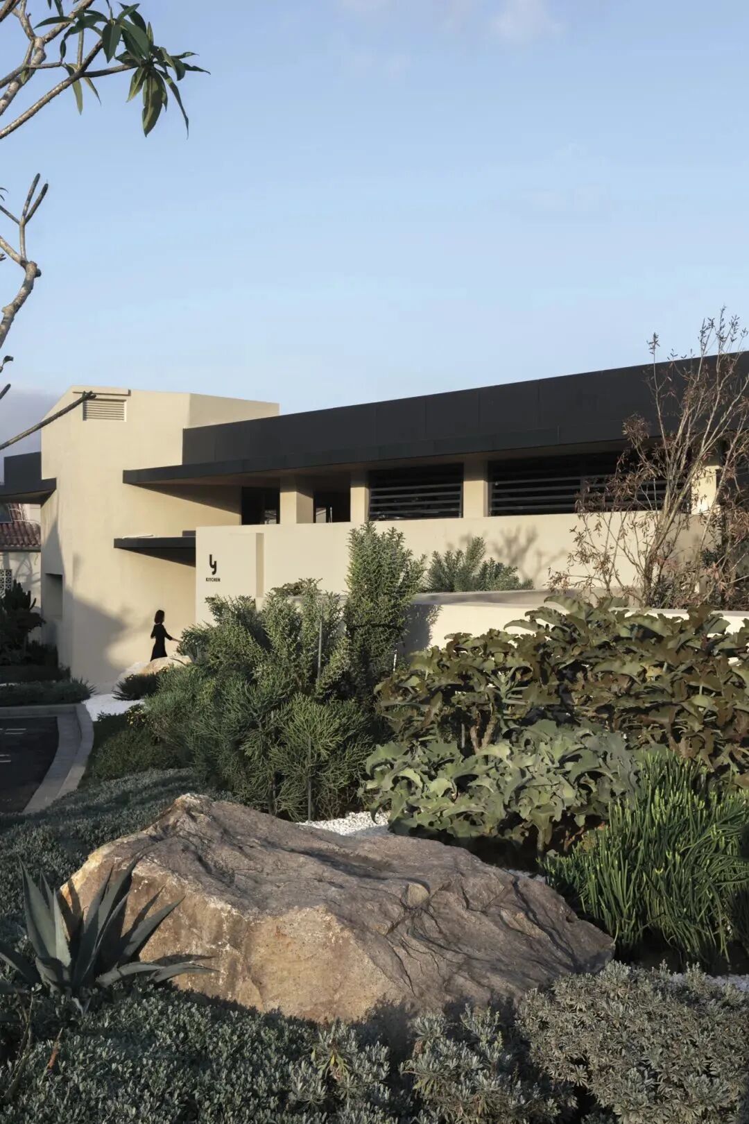 近日,纬图设计公布了位于阿那亚·三亚设计的Y hotel景观设计项目。团队在此首次尝试了大范围沙生植物,色彩饱和度低、呈灰蓝色系的沙生植物群组合起来呈现高级灰调质感。为确保植物氛围的营造,在确定好植物群的基调后,植物设计师先后8次进行选苗,在效果图和模型上去梳理植物的组合方式和形态关系。为达成全面立体的感受,设计师还将植物效果制作成360°VR视频,以此交底沙生单位,在现场共同完成了灰度色系植物栽植。