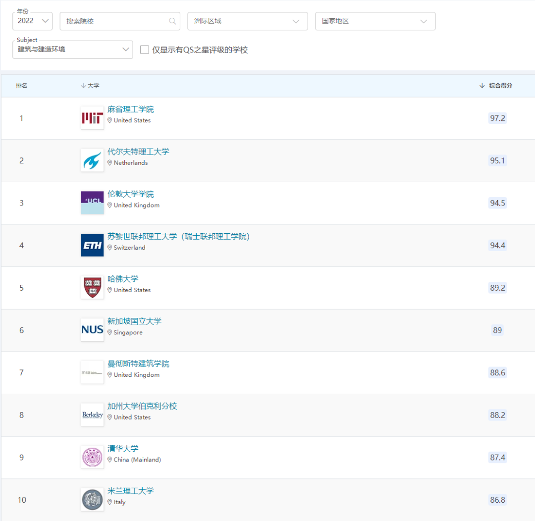 QS世界大学顶级建筑学院排名出炉,MIT蝉联第一,清华排名第9