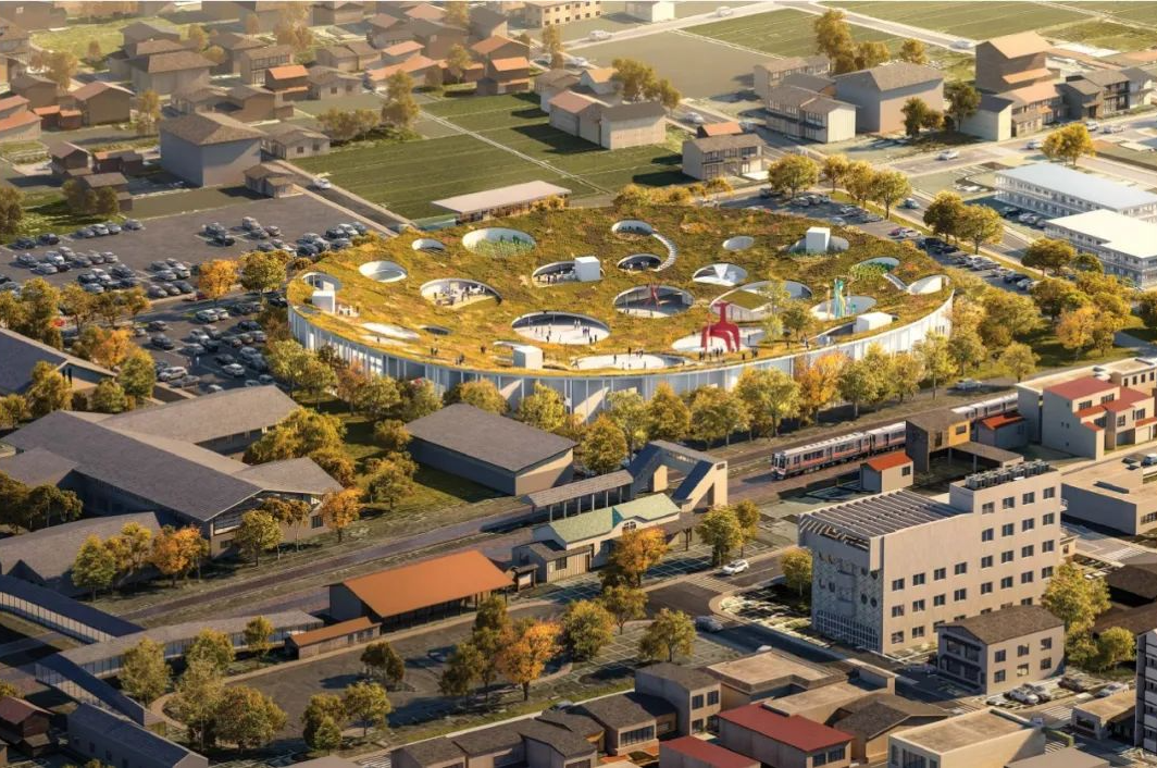 4月12日,藤本壮介建筑事务所于今日公布了日本岐阜县飞驒古川站东区中心的开发方案,这个占地面积达 21300 平方米的项目灵感来自于飞騨市独特的自然环境,整个建筑呈碗状,下陷的屋面布满了草甸和植被,各个区域通过复杂的小径相互连接,犹如日本传统城镇的城市肌理。