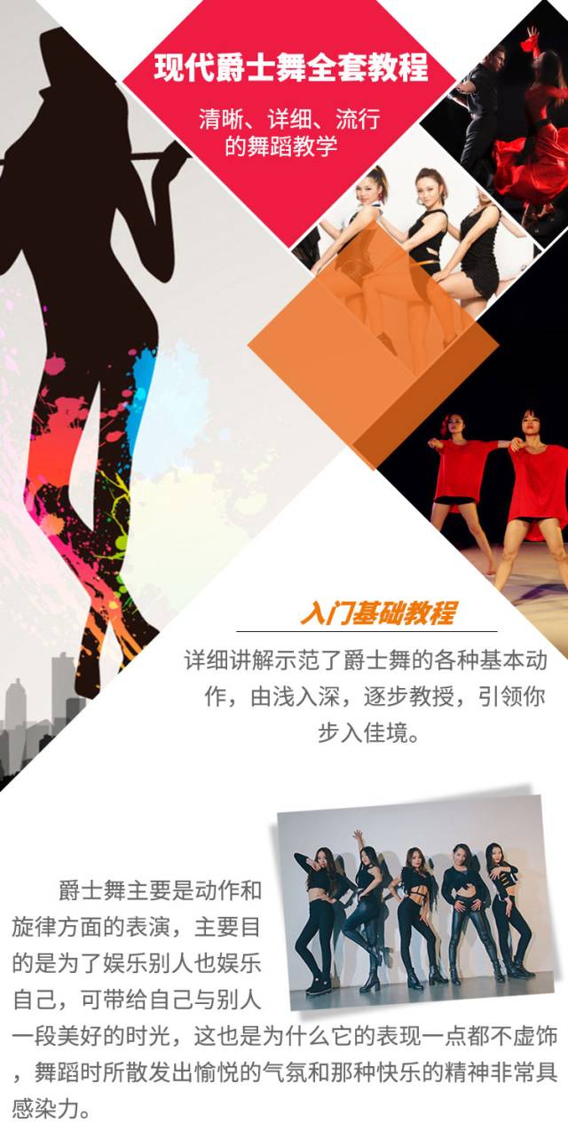 本套爵士舞精选课共16讲,分为三个部分的基本训练: