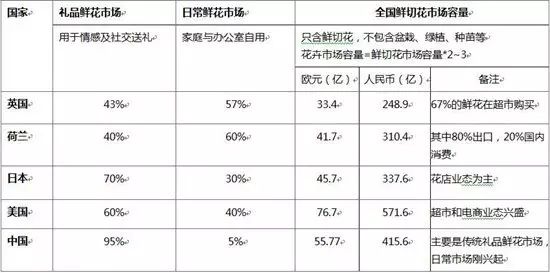 中国近两年来也出现了很多本土的鲜花O2O品牌,去年就有爱尚鲜花、ROSEONLY、野兽派、花点时间、Flowerplus花+等10多家鲜花电商品牌先后获得多轮融资,更有爱尚鲜花早在去年年初就挂牌新三板。爱尚鲜花联合创始人湛广曾说,如果中国鲜花市场未来5~8年达到欧美国家的比例,即日常鲜花和礼品鲜花平分天下,届时整个花卉产业市场规模将超过2000亿人民币。