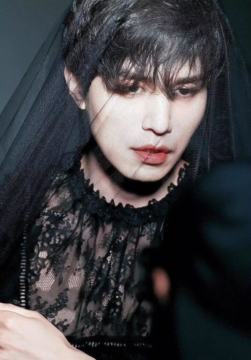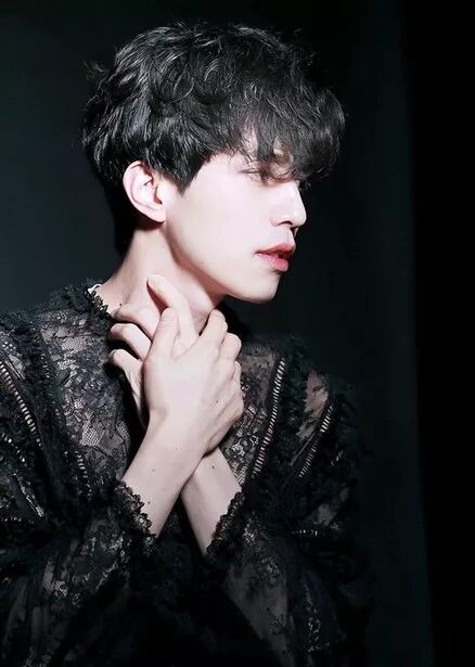 唇红齿白、皮肤细腻、眼睛晶亮,现实版的吸血鬼大人,穿黑色蕾丝照样帅气得不得了~