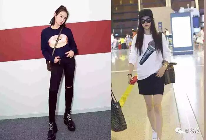 Acne Studios 之前以 emoji 作为灵感,设计了一系列简约又时尚的 emoji 服装,作为走在时尚前沿的女人,宋茜和唐嫣非常敬业…当然,配上 LV 的包包真是一点都不违和呢~
