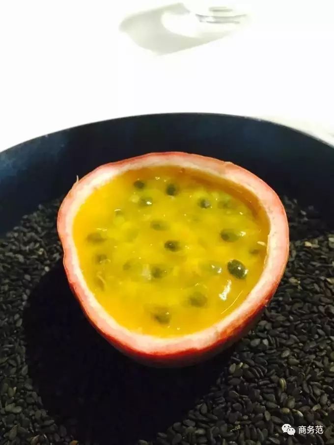 这颗看起来蛮可爱的,范主想对应的菜应该也是小清新那挂的,结果网友们纷纷吐槽这道混合了鹅肝和柚子啫喱、被半颗百香果装着的甜点,除了酸啥也没有…