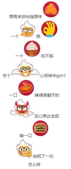 去年肯德基成功地推出了 K-emoji ,除了小鸡翅小鸡腿满天飞,还有标志 logo 老爷爷的表情。
