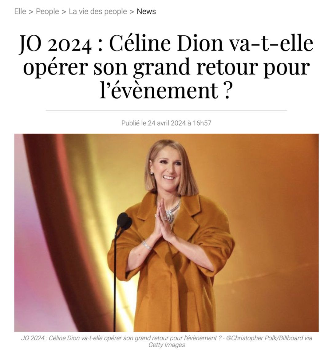 (法国版《ELLE》已经首先问出了这个问题:2024年奥运会,席琳·迪翁会卷土重来吗?)