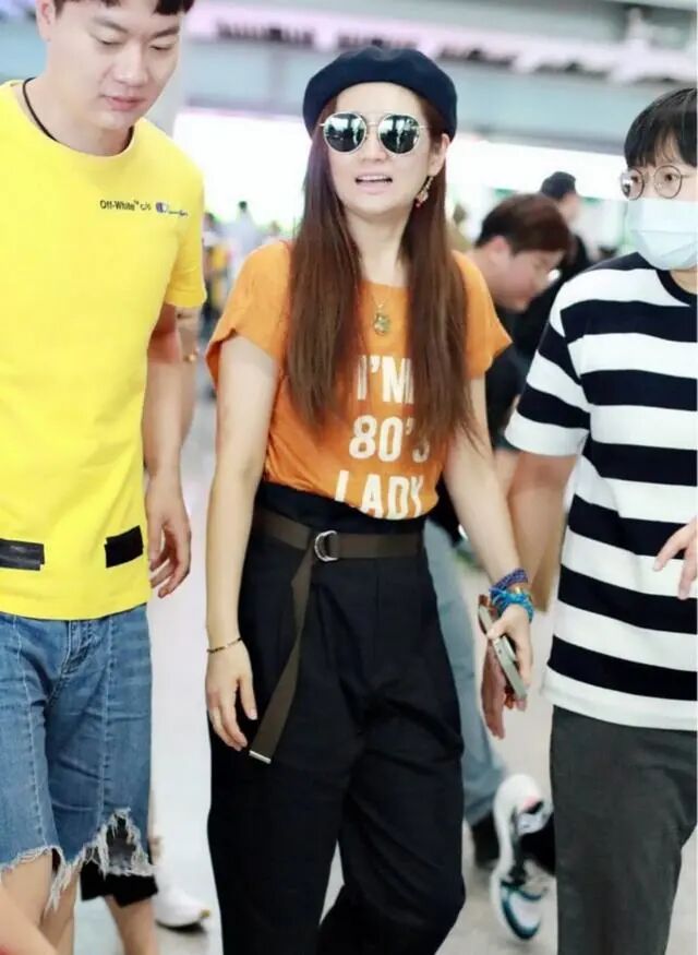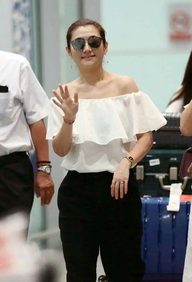 任家萱的身材虽然带点肉感,但保养的还是很不错的,比起同龄人来说也可以算是赢家了,简单的黑色长裤配着t恤,清爽利落不扮嫩都很有少女心,但是脸上的皮肤已经有点松弛的感觉了,看着反而显脸大,真的是扎心呐!