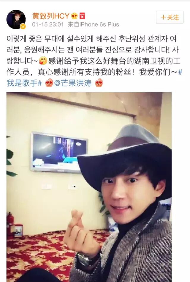 不仅现场观众疯狂比心形向黄致列示爱,电视机前的网友们也纷纷表示被欧巴的歌声深深俘获,黄致列新开通的微博账号粉丝也突破170万以上。