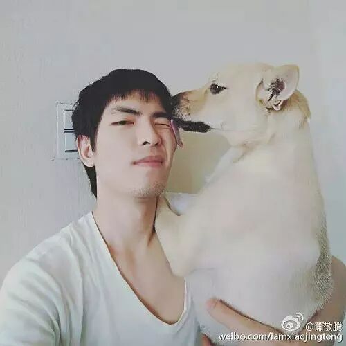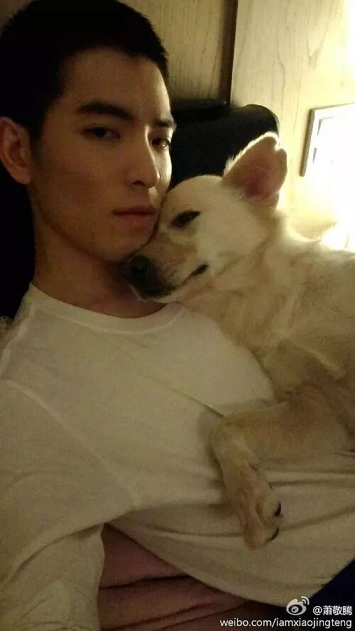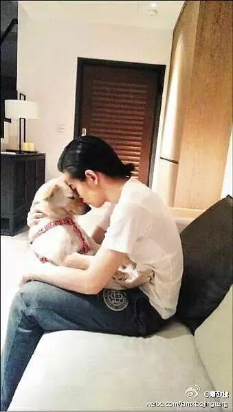 就连他和爱犬一起拍照,这画风都是……嗯,你们感受一下他们有多恩爱。