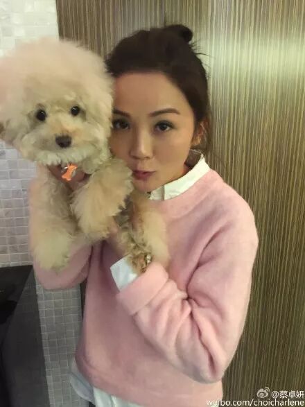 比如蔡卓妍和她的朱古力,一人一狗眼睛都黑溜溜的,很像了,都很可爱。