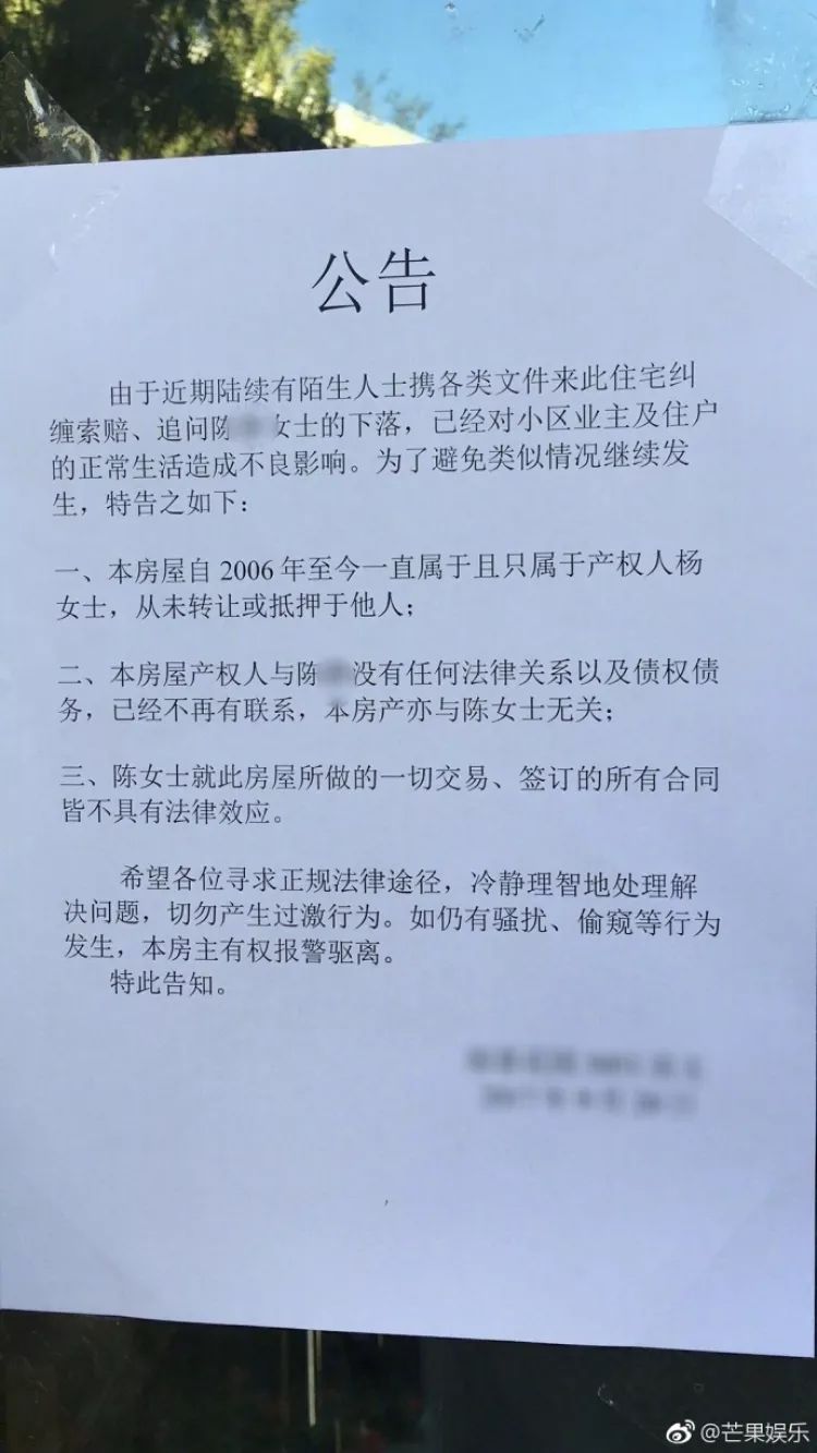 在别墅门口也贴上了公告↓