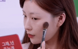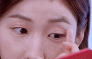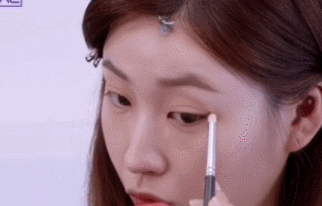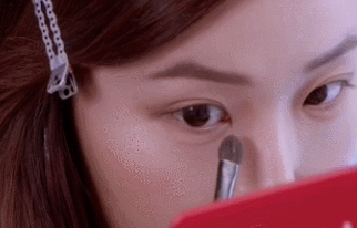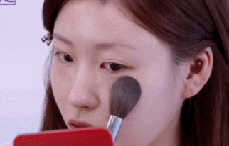 想要显得年轻,腮红的位置就要画的更加靠上,在苹果肌的中间位置加强橘粉色腮红的晕染。