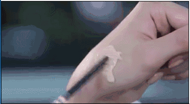 步骤四:先轻薄地涂上一层持久型粉底液,然后再叠加一层,从而一点一点将底妆“垒”起来!