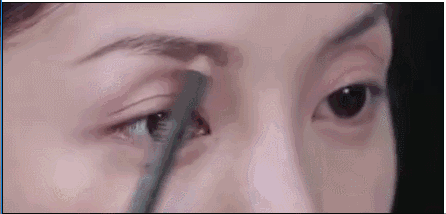 步骤十七:使用灰棕色加深眼尾,并向前晕染开,自然地填满睫毛缝隙。
