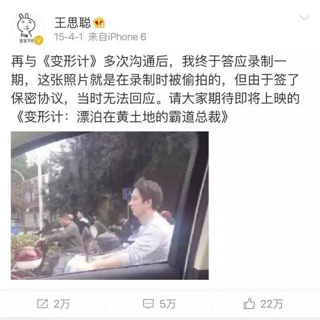 这次长沙之行,王思聪的出现恐怕不只是单单当回导演、录制一期节目这么简单,据说是以投资人、监制的身份在跟芒果娱乐合作一档新节目。