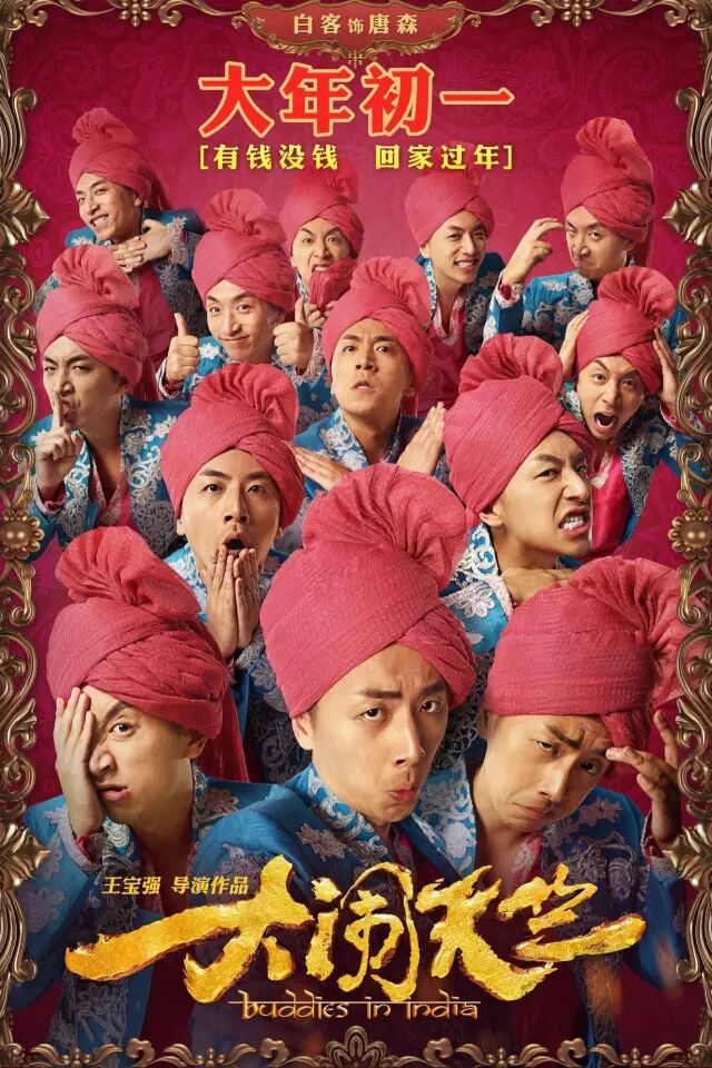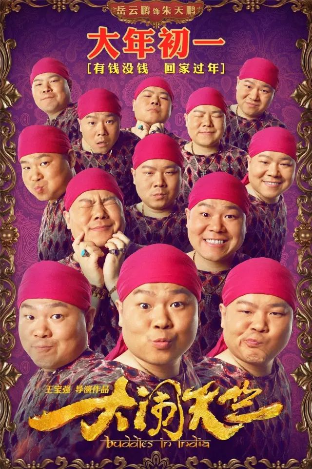 “天竺兄弟帮”齐上阵,表情喜庆,氛围欢乐,感染力十足。海报放眼望去全是笑脸,搭载充满异域风情的花边镜框和异域底纹,各主演纷纷贡献喜庆表情,配上异域咖喱味风情,抓人眼球分外亮眼。