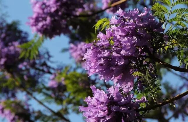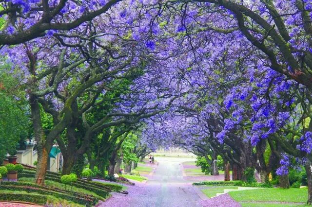 要问5月哪一种花最浪漫?蓝花楹当之无愧!成片的蓝紫色,为炎热的夏天送来一抹清凉,紫色的花瓣雨随风飘落,更是蜜汁唯美,浪漫到cry!