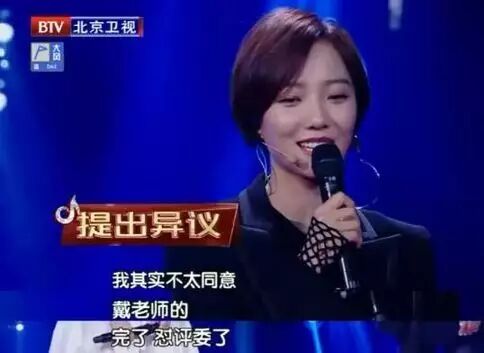 这次参加跨界歌王,戴玉强点评完她和姚晨的合唱,她马上说“我其实不太同意戴老师的”,之后自己也反应过来,追补了一句“完了,怼评委了”