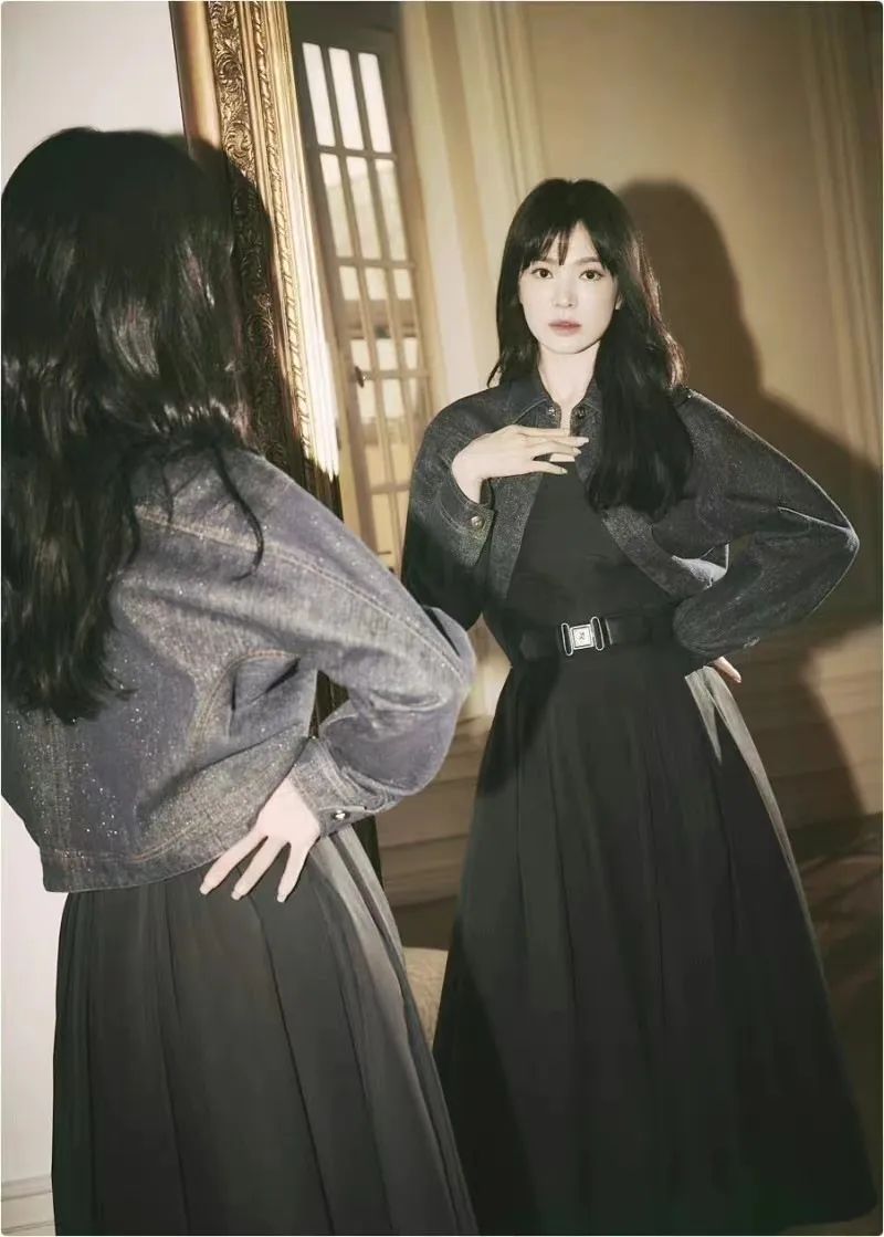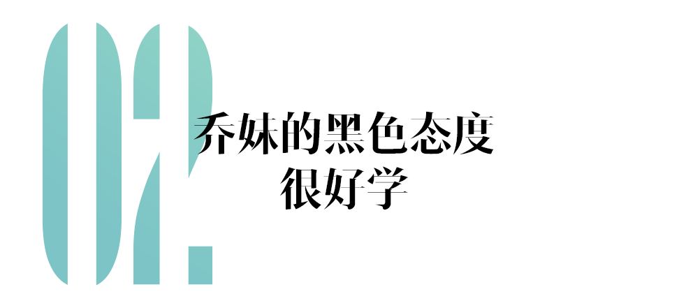 有的时候还会配上气场全开的烟熏妆和全包眼线,已然从温柔、无公害的邻家小姐姐变身飒气全开的霸气女人,这些黑色的服饰还让她在离婚后有了钮钴禄·乔的形容。