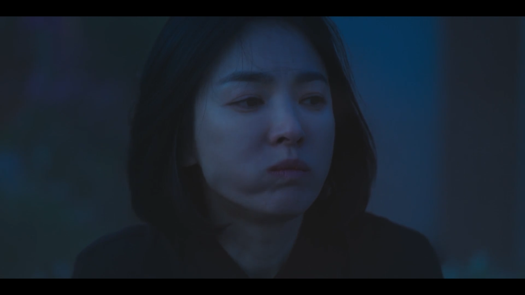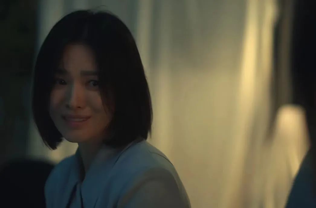 除了依托宋慧乔的好演技之外,剧里她的妆造也将氛围烘托得很到位。短款的BOBO头随着风“起舞”,不精致的妆容反而有种易碎感,特别惹人心生怜悯。