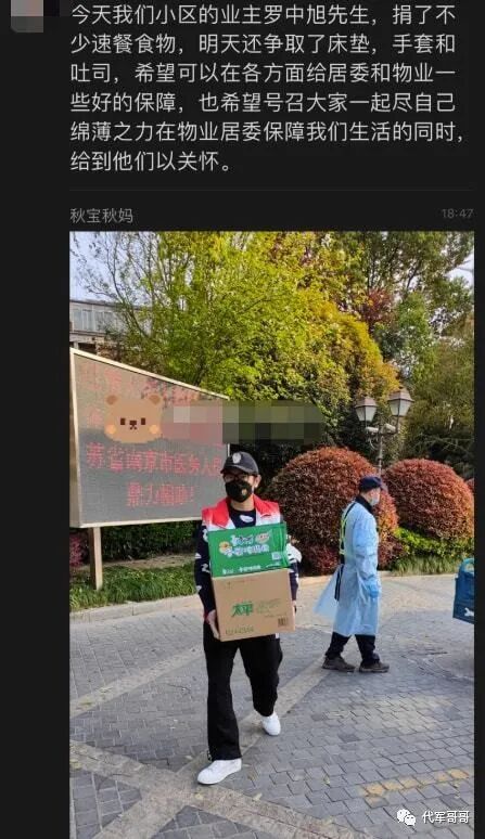 近日,有网友在社交平台上晒出上海男歌手罗中旭为小区志愿者捐赠物资的照片。据悉,罗中旭为居委和物业准备了好一些速食产品,还将争取床垫等物资。