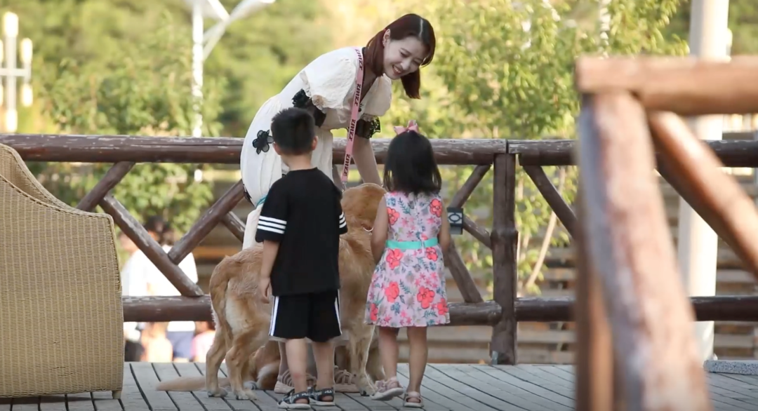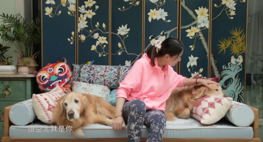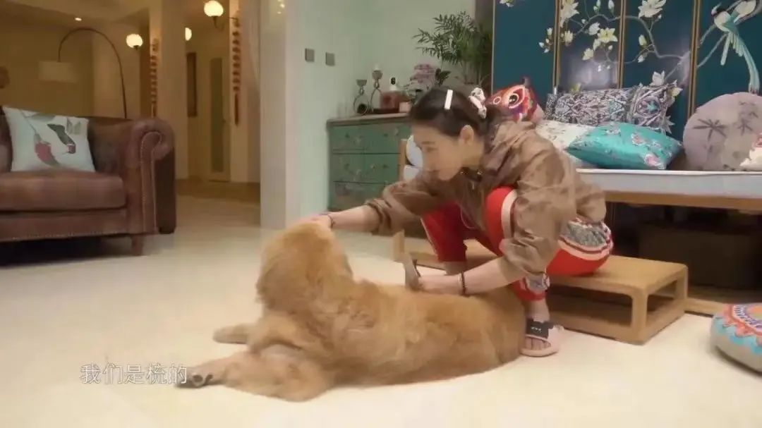 她在家里养了两只大金毛,并为它们安排了专门的房间和浴室。