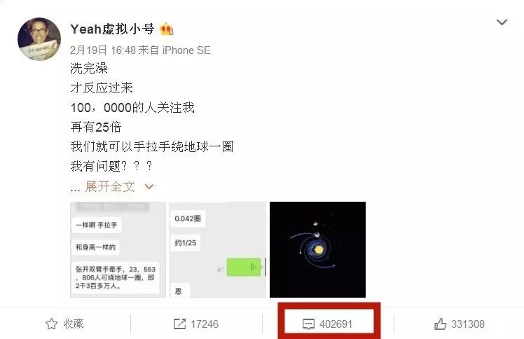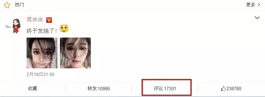 八太太又去爽妹子隔壁的范爷家去瞄了一眼,有5600多万粉丝的范爷最新一条明显是求安慰的“终于发烧了!”状态的微博留言数竟然只有1.7万多。