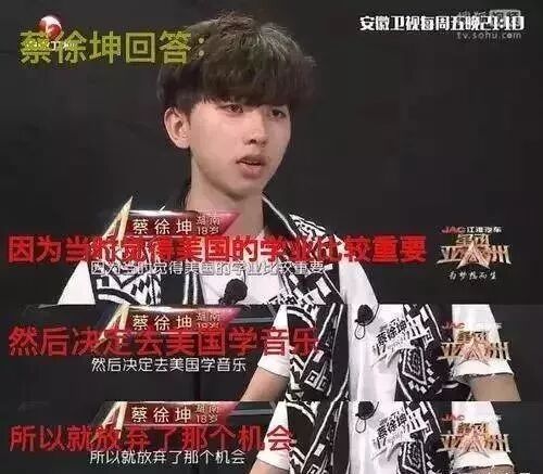 蔡徐坤回答“因为觉得美国的学业比较重要,所以放弃了作为TFBOYS队员出道的机会”