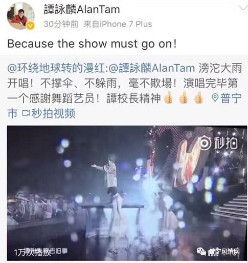 突下暴雨的时间,刚好是谭咏麟谭校长上台的时间。