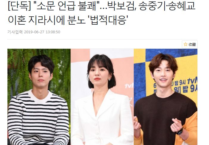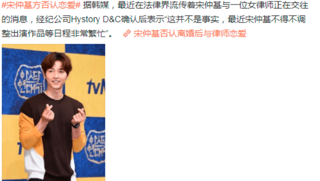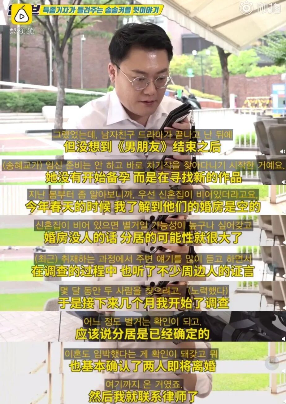 韩媒不相信两人是“性格不合”,有记者联系到宋仲基的律师,律师透露,是他们这边提交的离婚申请。