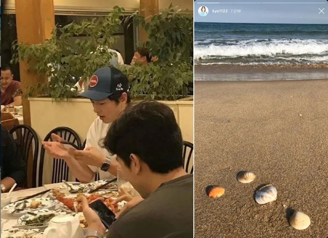 一次是2019年11月,有网友分享宋仲基在夏威夷与经纪人在夏威夷餐厅用餐的照片,而宋慧乔则在前一天在社交网的限时动态展示海边贝壳照。