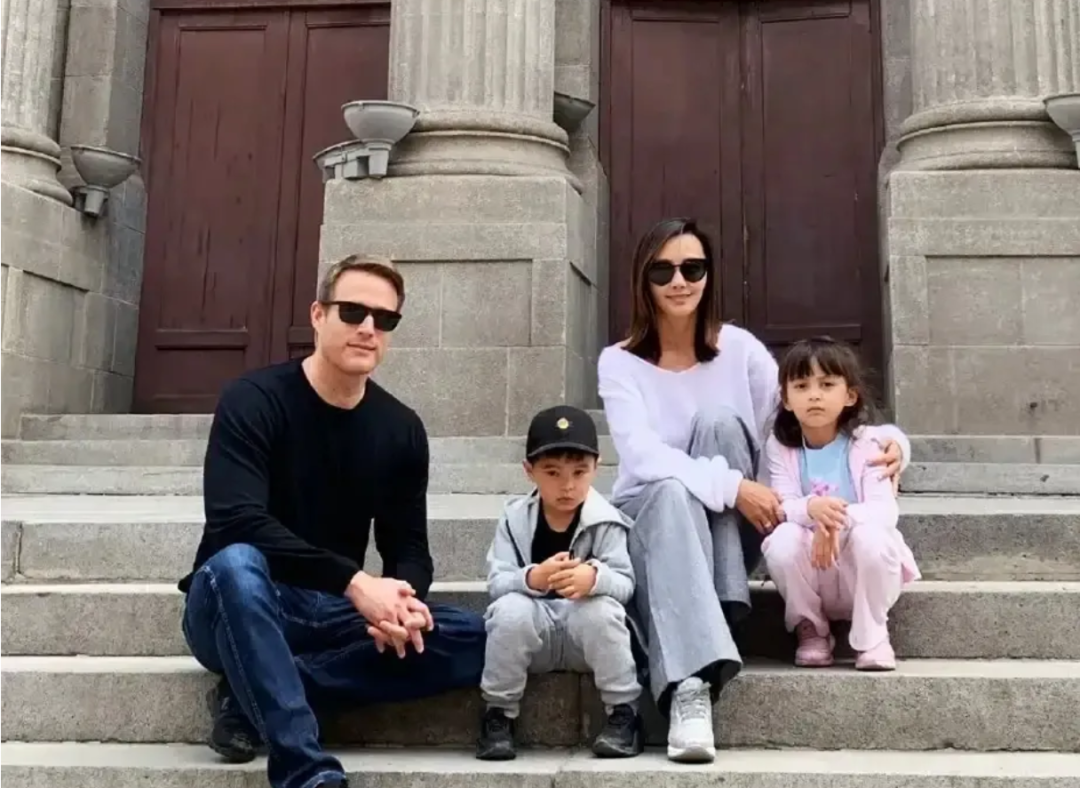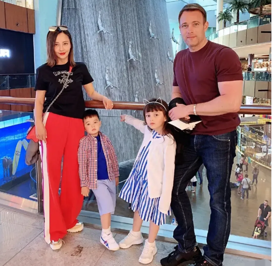 马雅舒一双儿女长大了,混血宝宝颜值爆表,一家四口超幸福