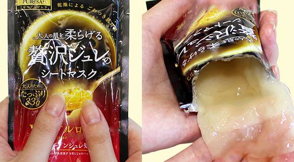 你们看图就可以看到,不是精华液也不是水,真的很像黄金的果冻,话说回来最近日本真的很流行果冻状精华液的面膜
