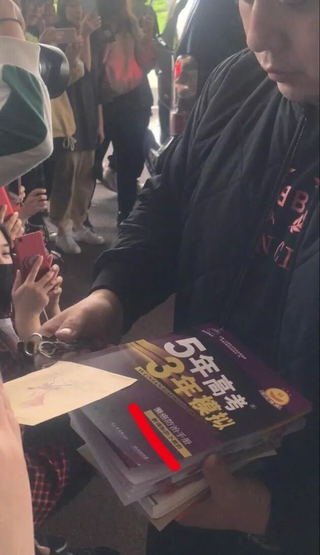 今天易烊千玺现身机场时,竟然有粉丝送了他一本《五年高考,三年模拟》!