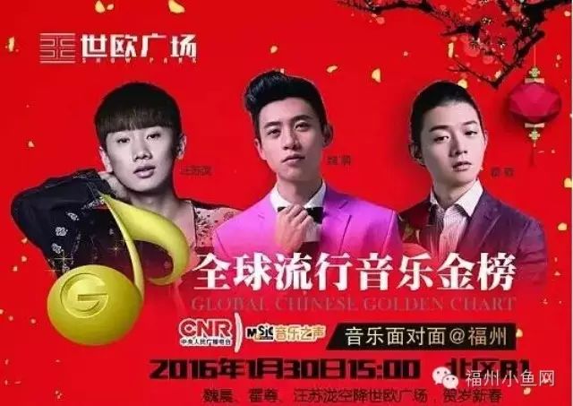 一大波高颜值正向你袭来~明星空降世欧30日,魏晨、霍尊、汪苏泷三大鲜肉亲临世欧全球流行音乐金榜他们或是《快乐男声》的季军,或是《中国好歌曲》的冠军,或是是电视剧《花千骨》歌曲《年轮》的创作者,个个才华横溢,个个颜值爆表有没有?2016年1月30日15:00-16:30世欧广场全...