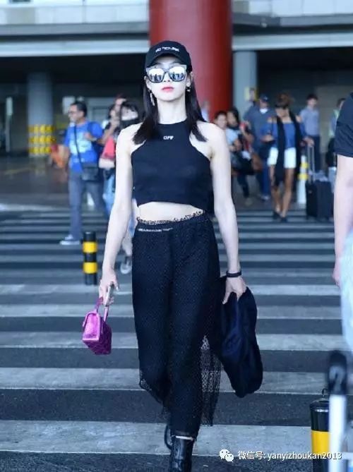 今天聊一聊宋茜,这还要从今天的微博热搜“宋茜机场”说起.呐,穿搭教程来咯~宋茜头戴黑色棒球帽,上身是露脐黑色小背心,下...