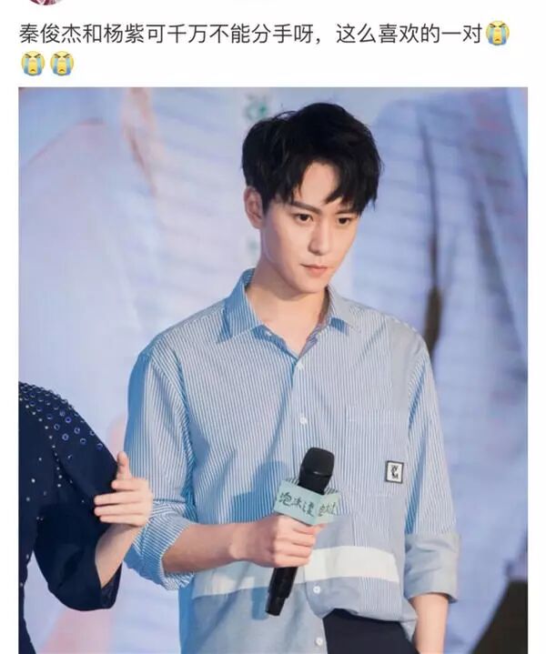 当时有位粉丝发了一条不希望杨紫秦俊杰分手的微博▼