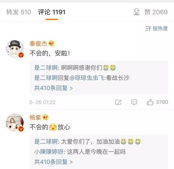 没想到俩人齐齐在这条微博下评论▼