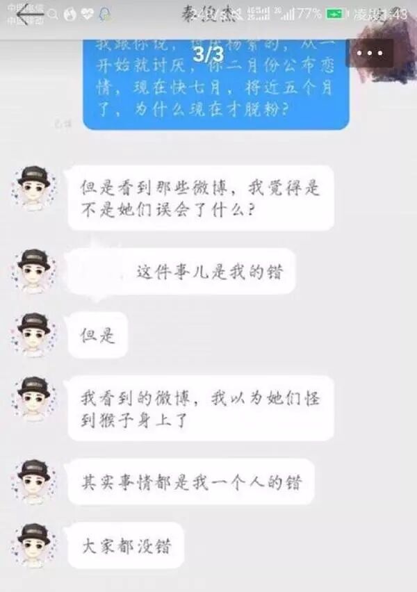 第二天秦俊杰就为这件事去粉丝群道歉了▼