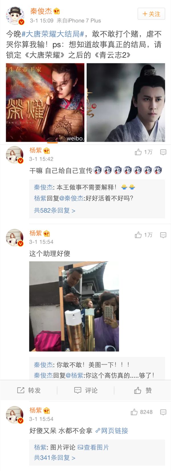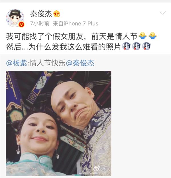 秦俊杰吐槽发自己丑照的杨紫是假女朋友▼