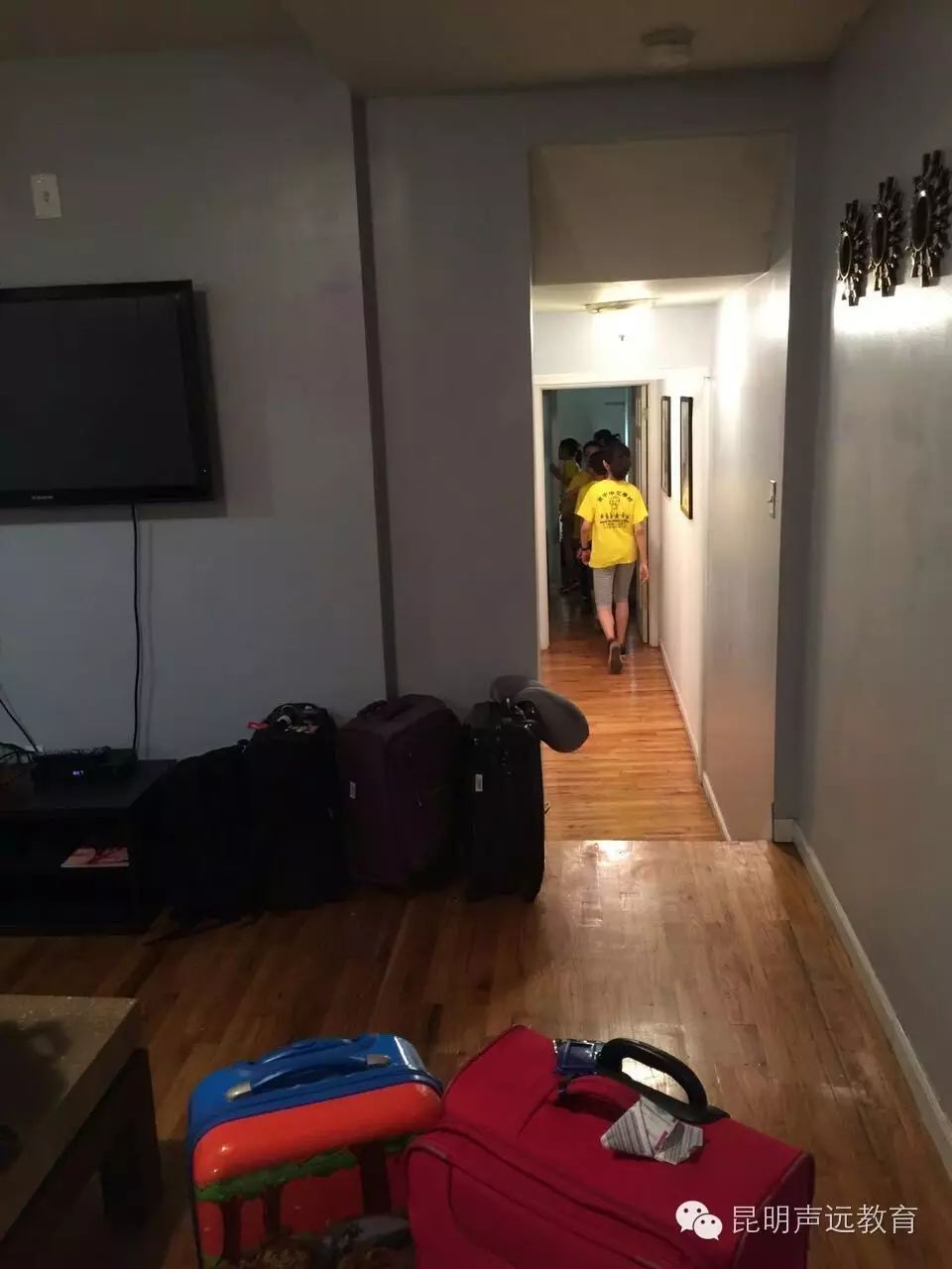 每个孩子不但自己搬自己的东西,还互相帮助,帮忙拿其他的东西,大家都很厉害。前两天因为修水管,大家不得不挤在一个两室的公寓里,真是苦了两位老师了,争着“抢睡”沙发。因为住的的曼哈顿上东城,能有房住已经很不错了。