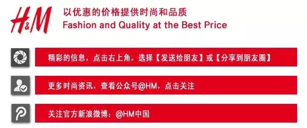 更多优惠资讯,更多精彩,敬请持续关注H&M官方微信!