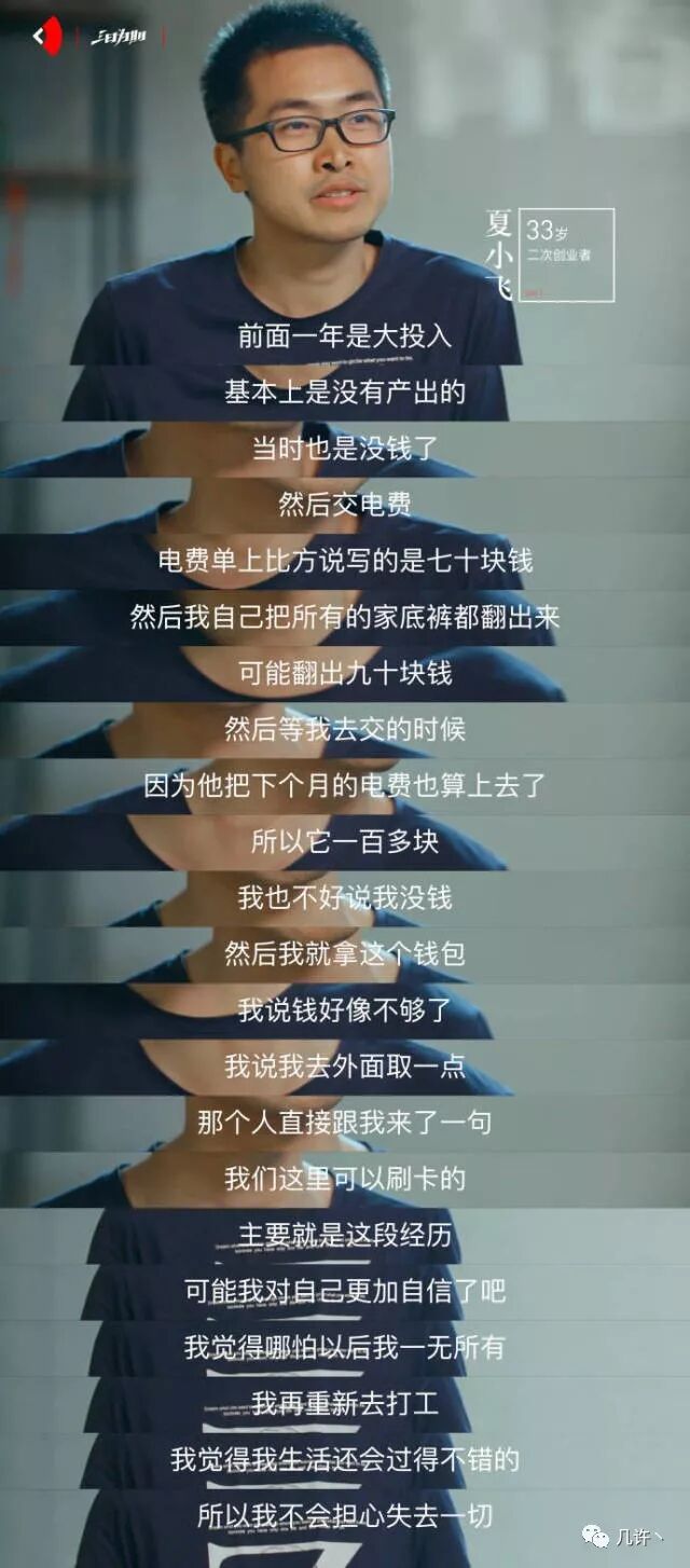一口气看下来,其实真正能打动人的,并不是什么惊险刺激的经历,而是一种态度,那种平凡生活中脚踏实地,遵从内心的生活方式。他们的想法折射出的心灵的真实,那种真实中有一股温暖的力量,让人倍感温情。会让人觉得即使我们的人生再平凡,再普通,只要好好活着,就一样可以很动人,可以很伟大。