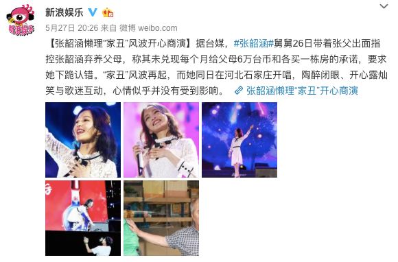 最近因《歌手2018》翻红的张韶涵,又被狗血亲人拖进浑水。