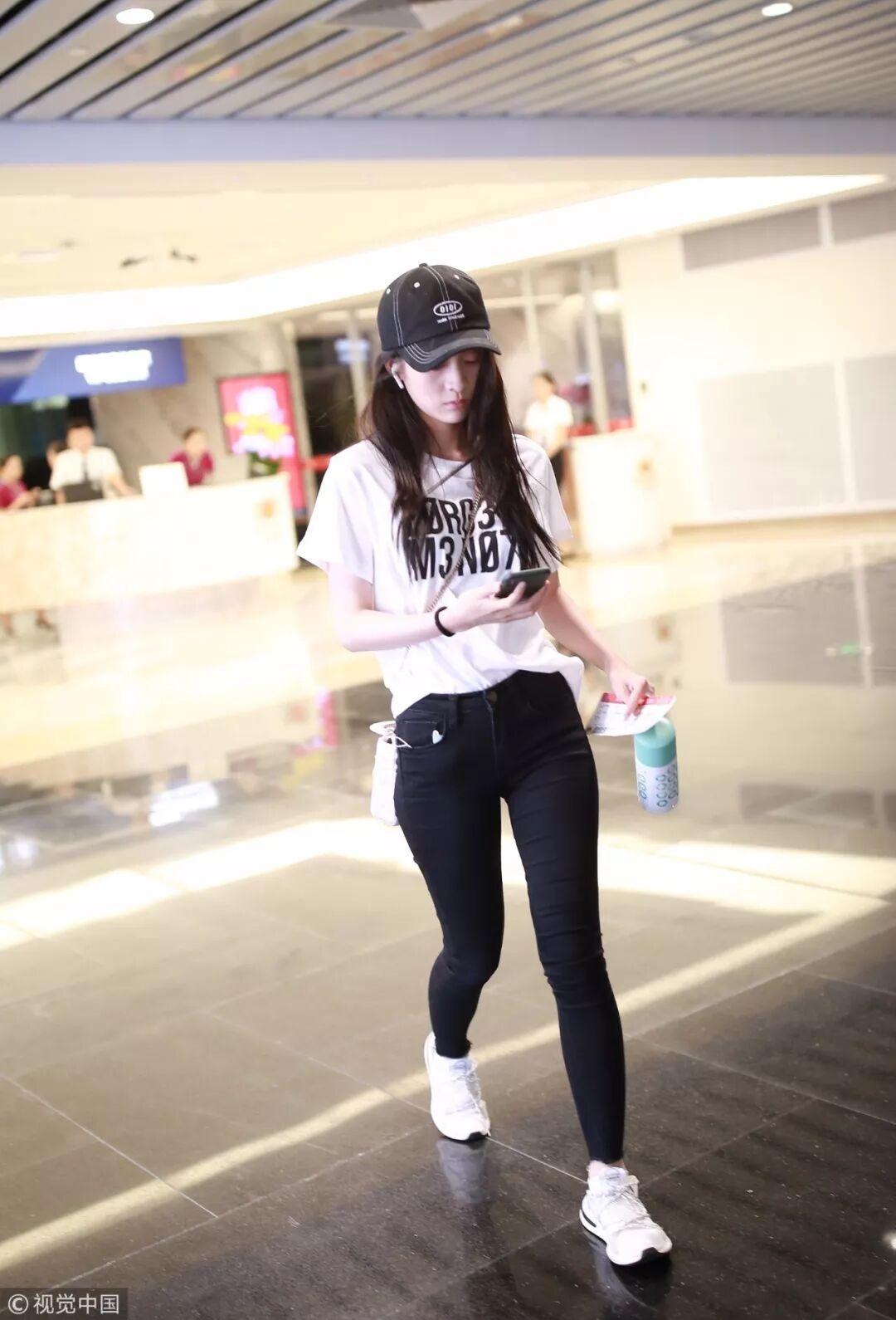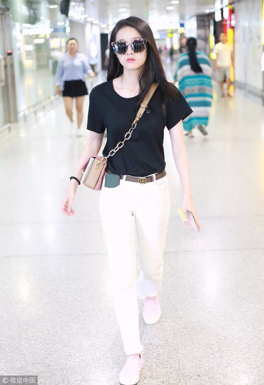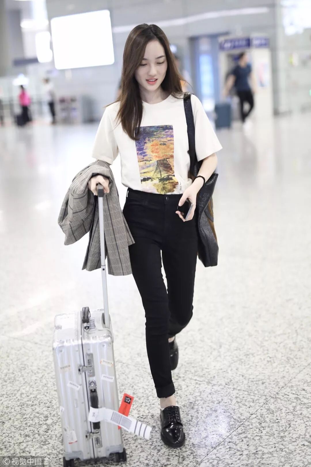 ▲看一下雪迎妹纸的机场照, 也是走简洁休闲风的,可是妹纸几乎都以长款牛仔裤搭配,属于不喜欢露腿派。