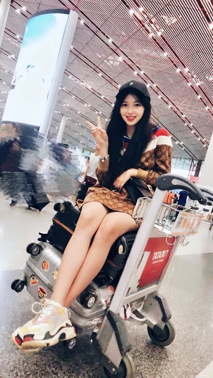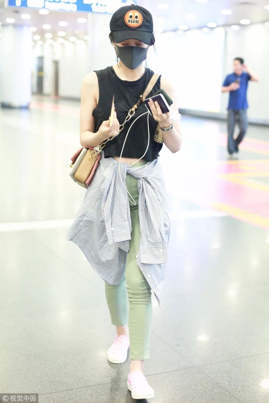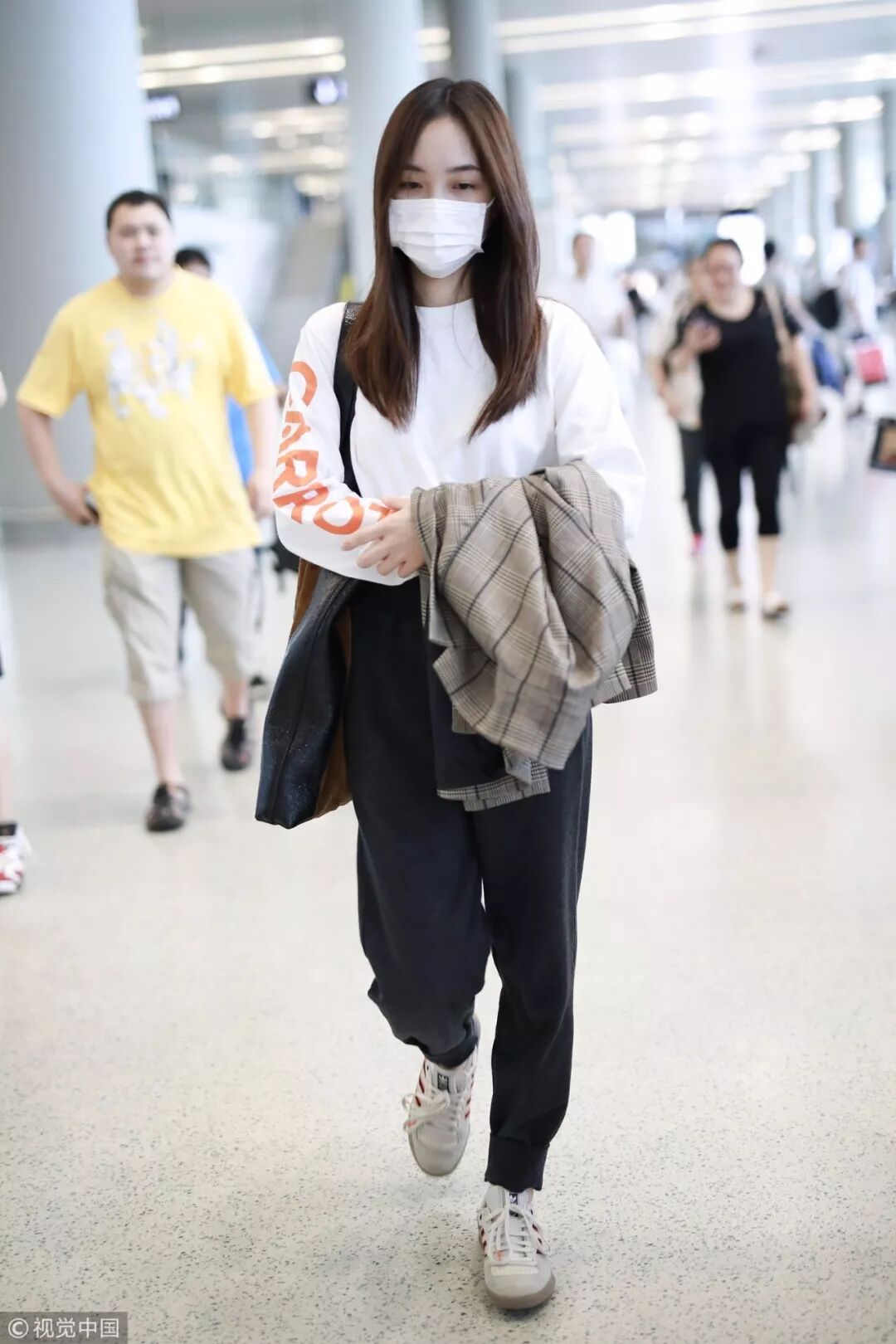 ▲看一下雪迎妹纸的机场照, 也是走简洁休闲风的,可是妹纸几乎都以长款牛仔裤搭配,属于不喜欢露腿派。